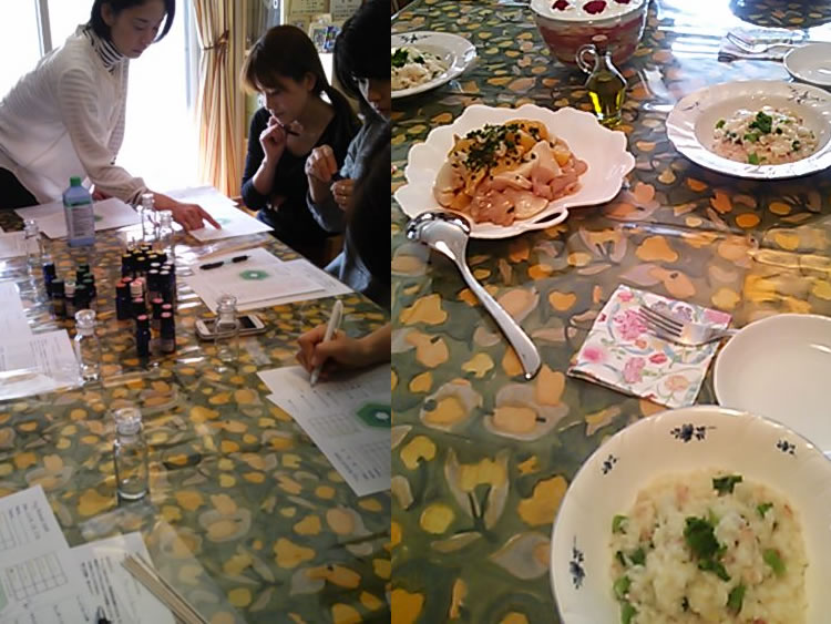 カフェなどでは、混雑時を避け、お食事時間の前後にアロマレッスンを行い、ランチやスイーツつきのレッスンに。